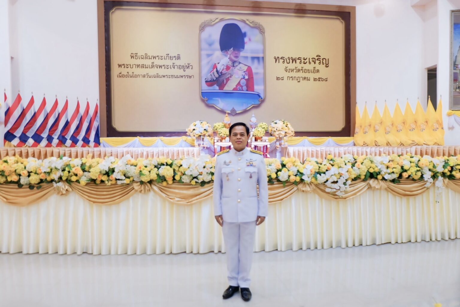 วันที่ ๒๘ กรกฎาคม ๒๕๖๘ ดร.กนก ยนต์ชัย ผู้อำนวยการสำนักงานเขตพื้นที่การศึกษามัธยมศึกษาเพชรบูรณ์ ปฏิบัติราชการในตำแหน่งผู้อำนวยการสำนักงานเขตพื้นที่การศึกษามัธยมศึกษาร้อยเอ็ด พร้อมด้วย บุคลากรในสังกัด สำนักงานเขตพื้นที่การศึกษามัธยมศึกษา เข้าร่วมพิธีทำบุญตักบาตรถวายพระราชกุศล และพิธีถวายสัตย์ปฏิญาณเพื่อเป็นข้าราชการที่ดีและพลังของแผ่นดิน กิจกรรมเฉลิมพระเกียรติพระบาทสมเด็จพระเจ้าอยู่หัว เนื่องในโอกาสวันเฉลิมพระชนมพรรษา ๒๘ กรกฎาคม ๒๕๖๘ โดยมี นายชัชวาลย์ เบญจสิริวงศ์ ผู้ว่าราชการจังหวัดร้อยเอ็ด เป็นประธานในพิธี พร้อมด้วย รองผู้ว่าราชการจังหวัดร้อยเอ็ด หัวหน้าส่วนราชการ ข้าราชการพลเรือน ตุลาการ อัยการ ทหาร ตำรวจ องค์กรปกครองส่วนท้องถิ่น และสมาชิกองค์กรต่างๆ เข้าร่วมพิธีดังกล่าว ณ หอประชุมจังหวัดร้อยเอ็ด อำเภอเมืองร้อยเอ็ดจังหวัดร้อยเอ็ด