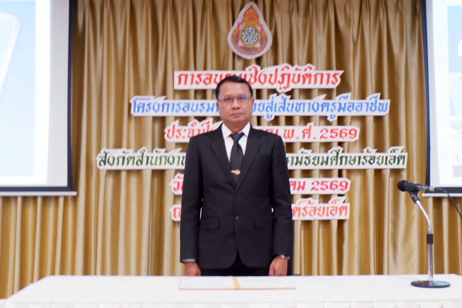 วันที่ 22 มกราคม 2569 09.00 น. สำนักงานเขตพื้นที่การศึกษามัธยมศึกษาร้อยเอ็ด กำเนินการจัดอบรมโครงการอบรมพัฒนาครูผู้ช่วยสู่เส้นทางครูมืออาชีพ ประจำปีงบประมาณ พ.ศ. 2569 โดยมี นายนันทวิทย์ นาคแสง รองผู้ว่าราชการจังหวัดร้อยเอ็ด เป็นประธานพิธีเปิดการอบรม และ ดร.กนก ยนต์ชัย ผู้อำนวยการสำนักงานเขตพื้นที่การศึกษามัธยมศึกษาร้อยเอ็ด เป็นผู้กล่าวรายงานต่อประธานในพิธี มีผู้เข้ารับการอบรม คือ ครูผู้ช่วยในสังกัด สพม.ร้อยเอ็ด จำนวน 93 คน ได้รับความอนุเคราะห์วิทยากรจาก รองผู้อำนวยการสำนักงานเขตพื้นที่การศึกษามัธยมศึกษาร้อยเอ็ด ผู้ทรงคุณวุฒิ ผู้อำนวยการกลุ่ม/หน่วย ศึกษานิเทศก์ ได้ให้เกียรติบรรยายการปฏิบัติหน้าที่ให้กับผู้เข้ารับการอบรมในครั้งนี้ จัดอบรมขึ้นในระหว่างวันที่ 22-23 มกราคม 2569 ณ ห้องร้อยเอ็ดบอลรูม โรงแรมเอ็มแกรนด์ อำเภอเมืองร้อยเอ็ด จังหวัดร้อยเอ็ด